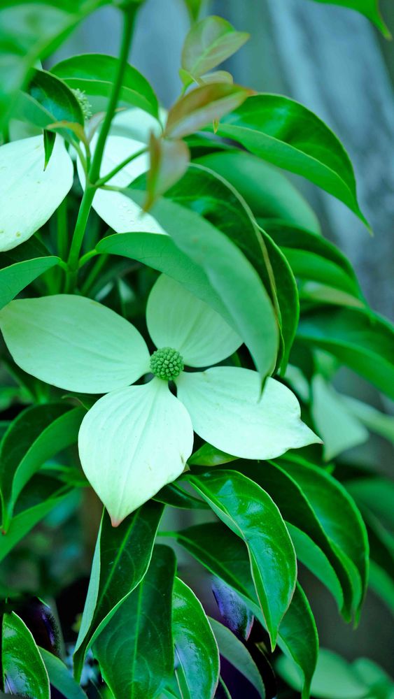 花は同じですが葉っぱは細長く、ヤマボウシとは