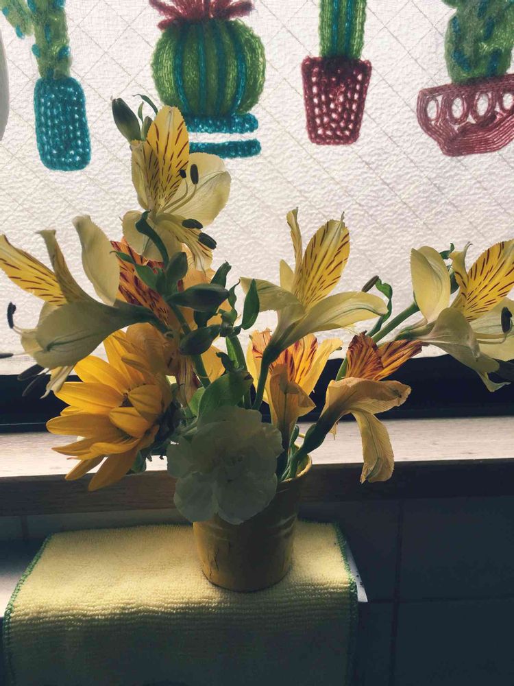 キッチンに黄色い花を飾ると金運アップと聞いて欠かさず飾ってます笑笑
