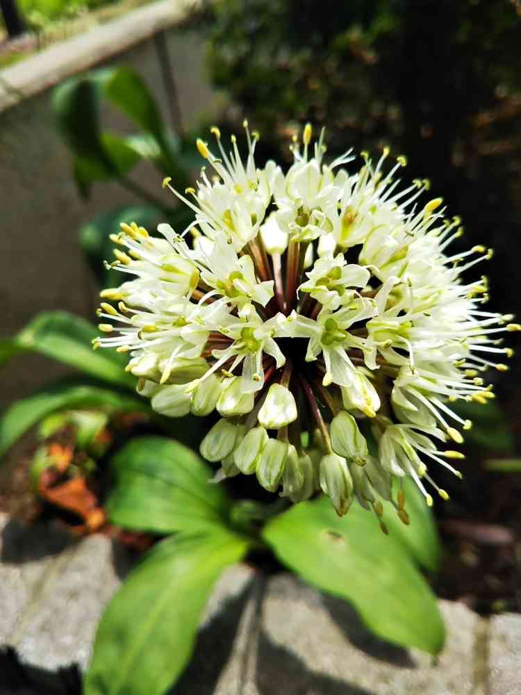 (^-^)/行者にんにくの花、珍しいです。白くてネギ坊主みたいで可愛らしい❣️