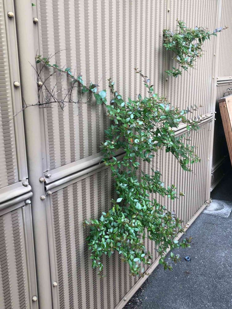 この壁の向こうにしげっている低木が元々壁に空いてる小さな隙間から成長したものと思われます