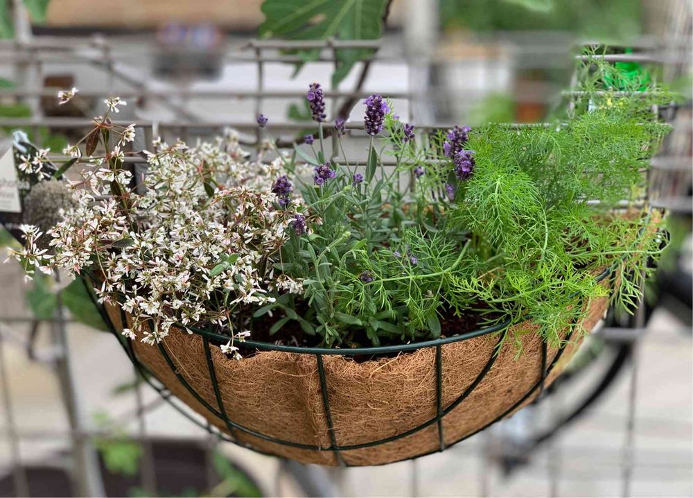 ハーブメインの寄せ植え。イングリッシュラベンダーが一番弱そうなイメージ。