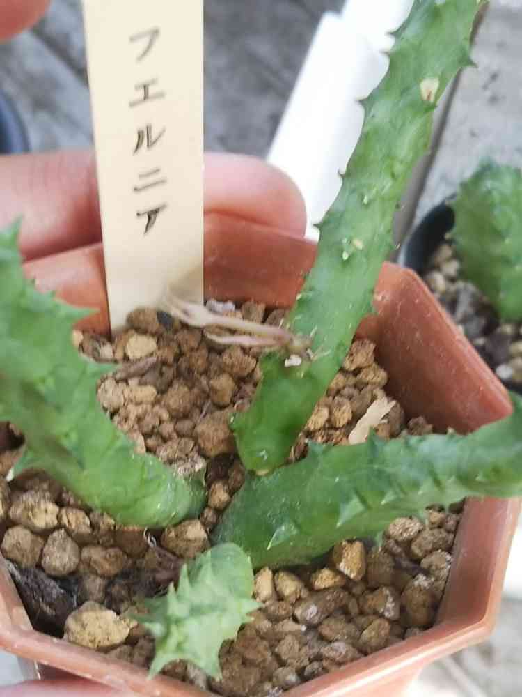 去年表参道の花屋の処分品コーナーにいたフェルニアにも花芽が😍 これで挿し芽したゼブリナも根づいてくれればなぁ