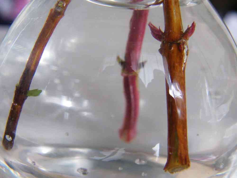 剪定したガーデンヒペリカムを小さな花瓶に生けていたら、小さい芽が出てきました🌱