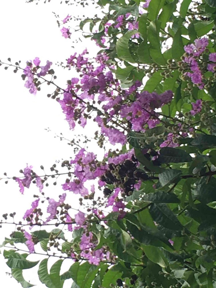 最近、背の高い木に紫色の花が、いっぱい咲いています。