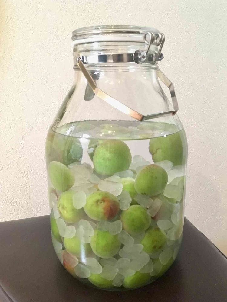 無印良品のネット販売で梅と瓶のセットをゲットして、ホワイトリカーと氷砂糖を近所のスーパーで買って仕込みました。