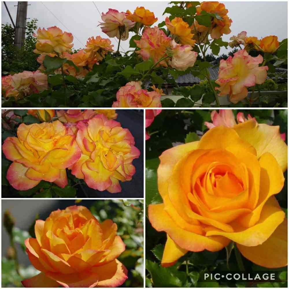 咲き進むに連れて色移りする賑やかな薔薇です。