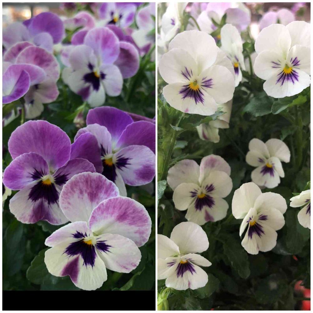 右側が現在、ほぼ白い、サイズも小さくなりました。左側は2週間程前、この時点でもかなり色が薄くなっていました。これって人間と同じでは❓白髪になるし背も縮む😥でもビオラが可愛いということは人も老いても本当は可愛い💕可愛くないと思うのは思い違いだと💕