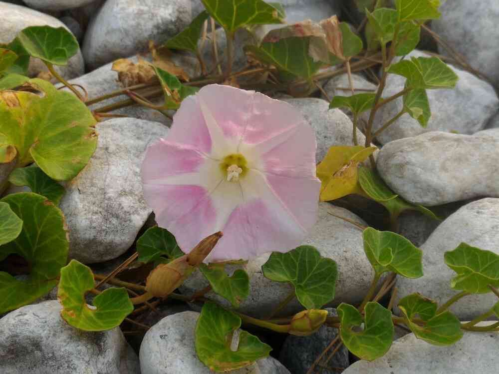 薄いピンクで朝顔に似ています。ビーチの上を這うように、たくさん咲いていました。