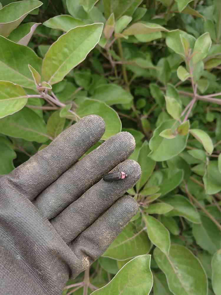 西洋ニンジンボクが茂りすぎたのでちょっと剪定しているとホタルが葉っぱから落ちてきました♪