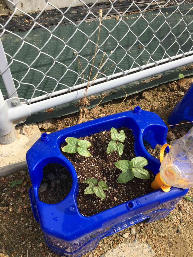 息子の小学校で育てているアサガオです。