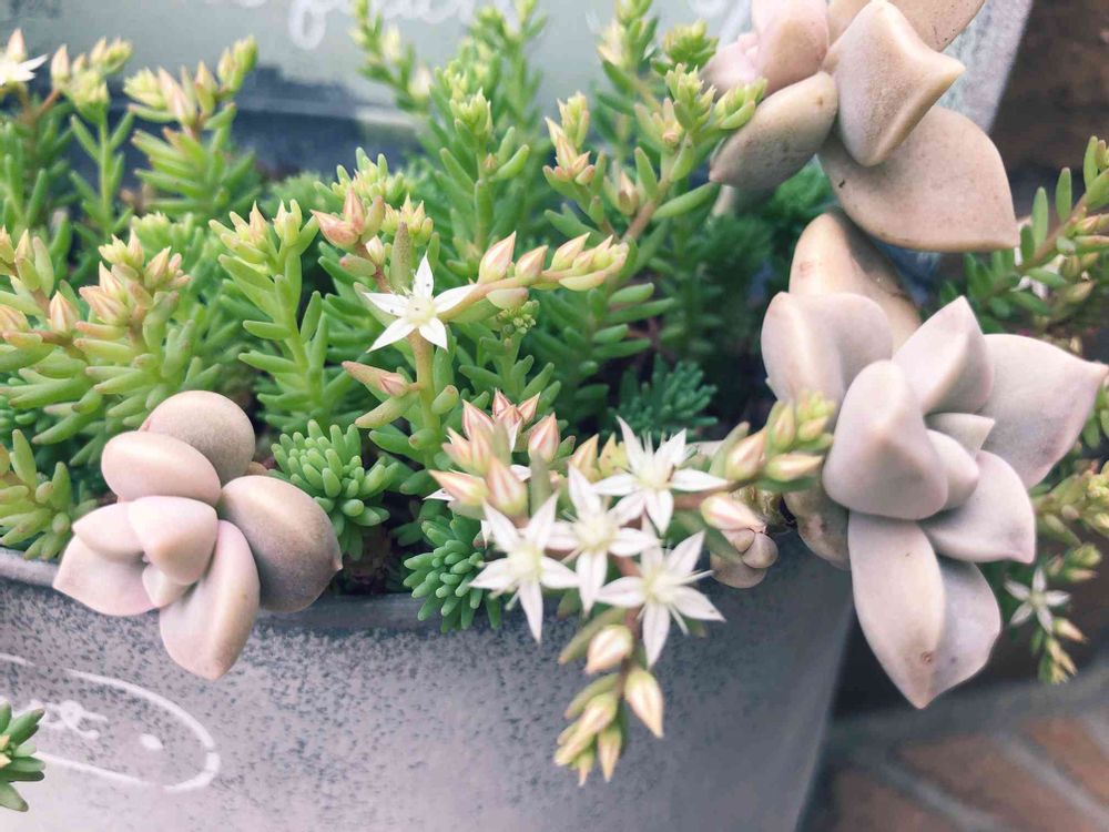 気がついたらセダムの花が咲いていて、朧月の赤ちゃんも幼稚園さんくらいのサイズになっていました💕