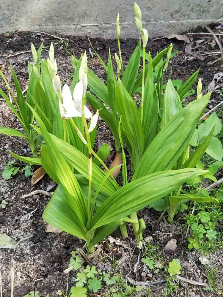 斑入りなしシランの白、隣にエンジシランはびっしりと、こじんまりと咲くと思います。