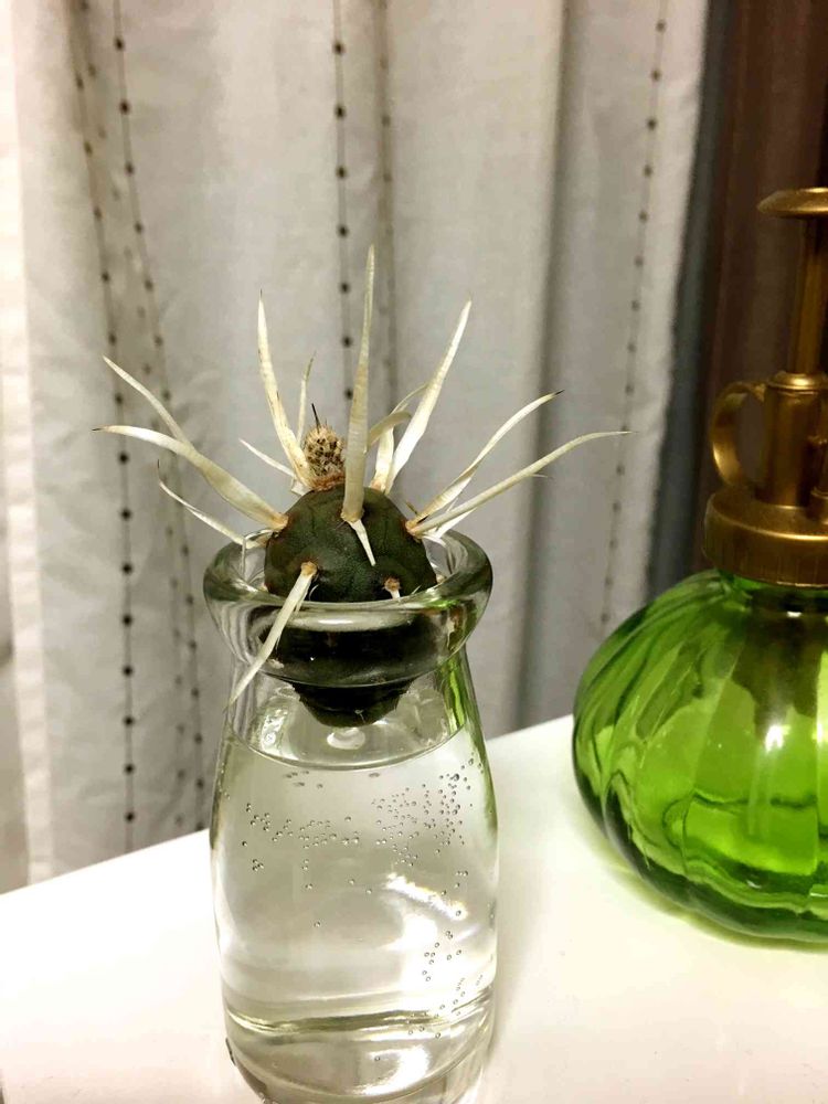 折れてしまった武蔵野くんを土の上に放置し、根がでるのを待っていたが全然出ないので、水耕に代えてみた。根っこでるかな〜
