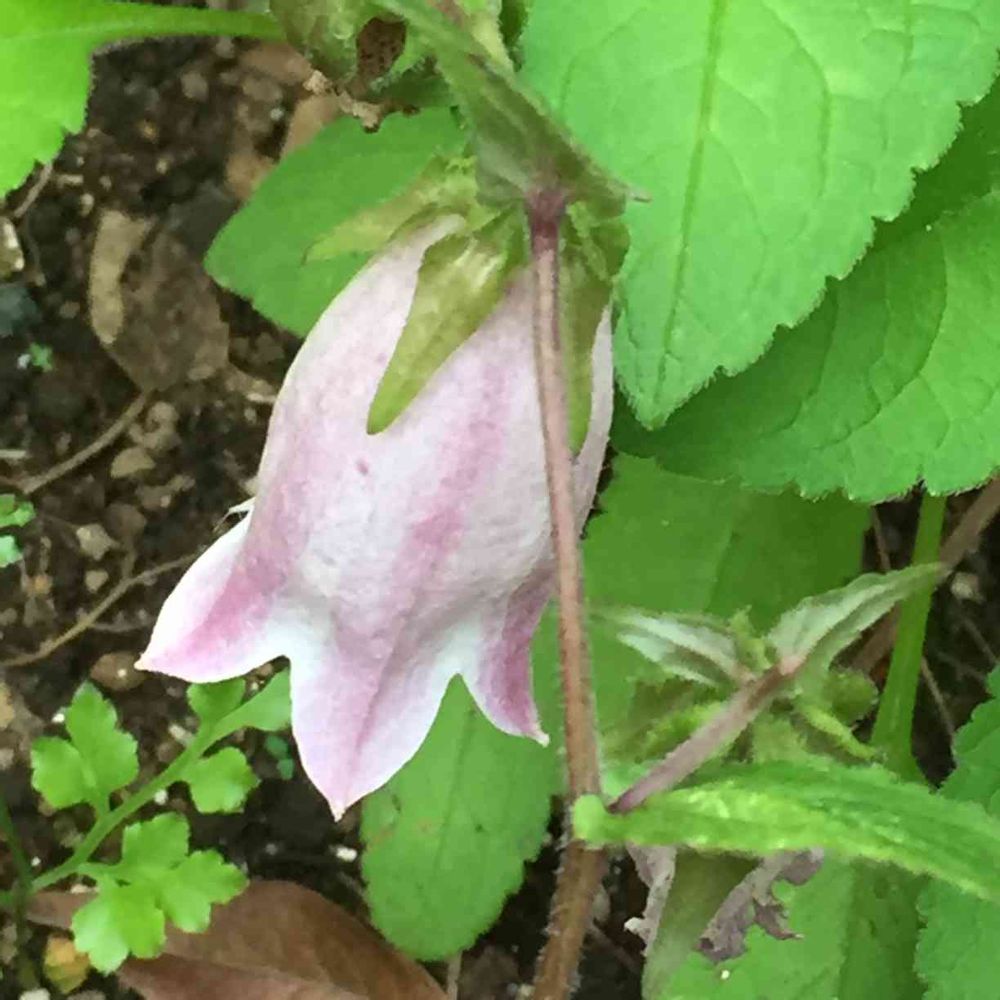 ホタルブクロが根付いてくれたようです。先週道端に咲いているのを貰ってきて、地植えしたもの。