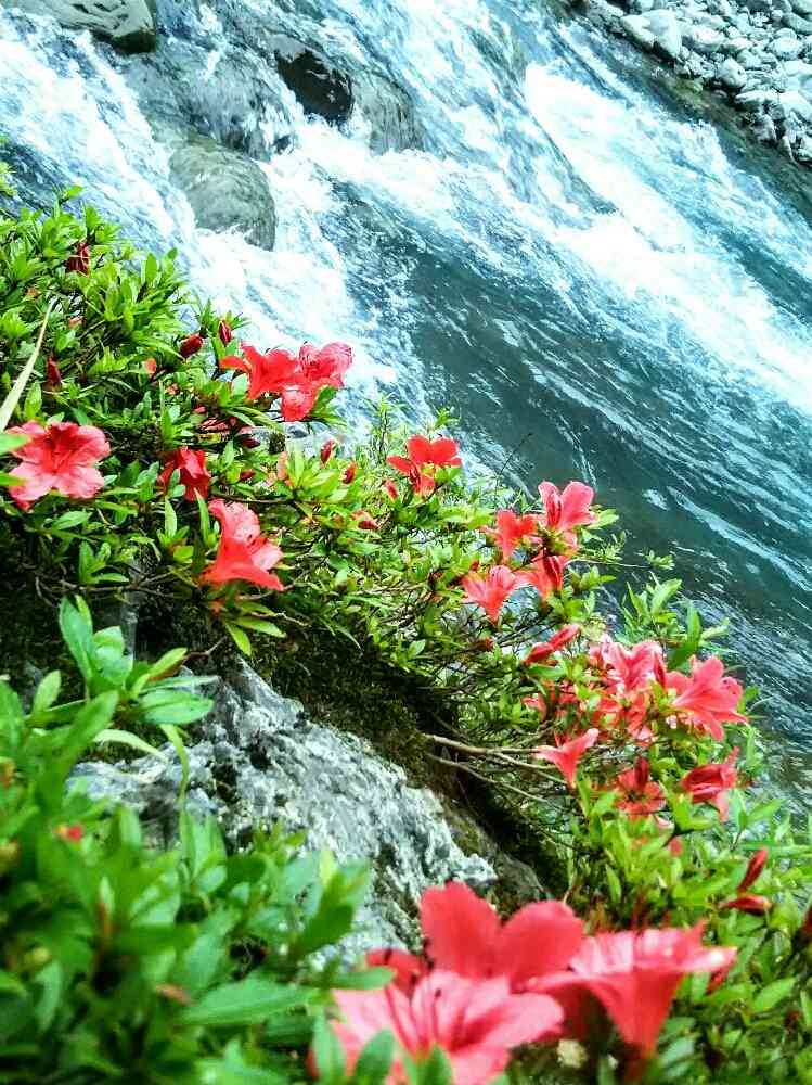 6月1日 鮎の友釣り解禁日に合わせるように咲くイワツツジ