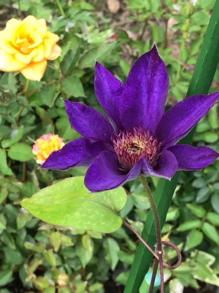 歩き疲れて、帰路につく 行きも帰りも車が多くて やや疲れた😅 おみやげは赤い八重のクレマチス。花は来年の楽しみ〜🥰