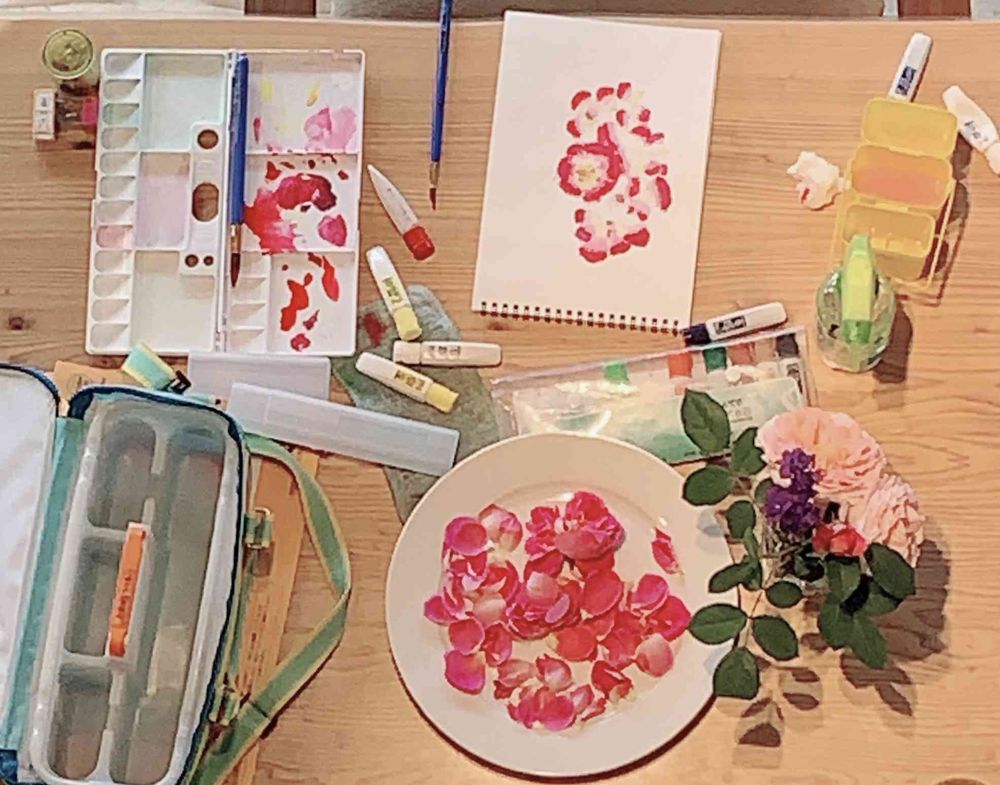 ハラハラ…と散ってしまったバラの花びらをお皿に広げて飾っていたら