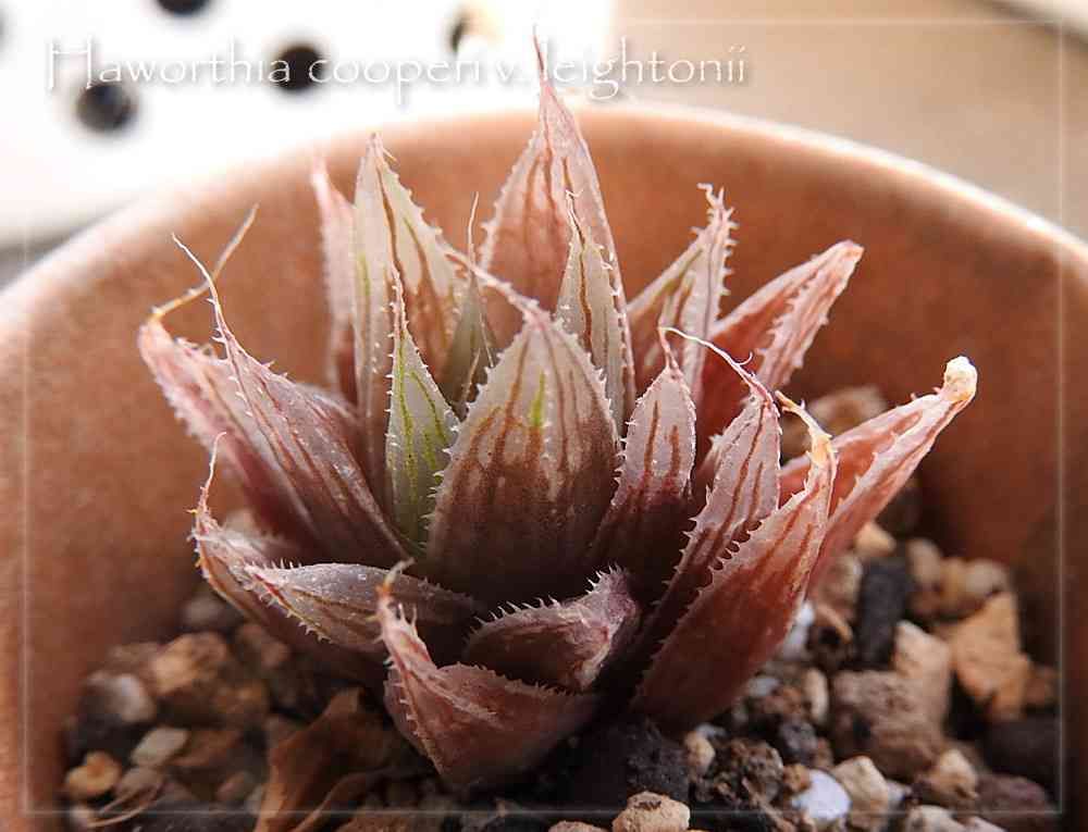 まだまだ小さいレイトニー。でも買ったのは2年以上前に2014年9月。オークションで買って届いてみたら根っこなし。ハオルチアは、土に挿しておくだけで根が出て復活してくれるのもあるけど、これはタイミングが悪かったのか何なのか、土に挿しても根が出ない、水苔に包んでも思わしくなく、うっかり乾燥させて逆戻り。