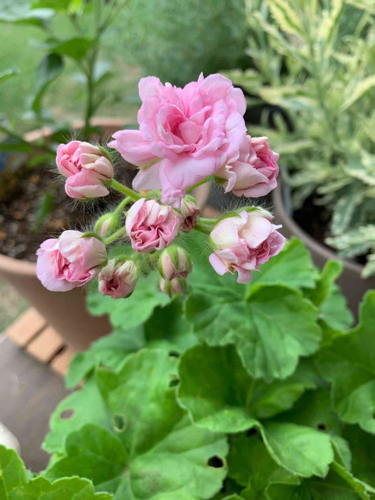 バルコニー/ベランダ,ばら咲きゼラニウム ミルフィールドローズ,花のある暮らしの投稿画像