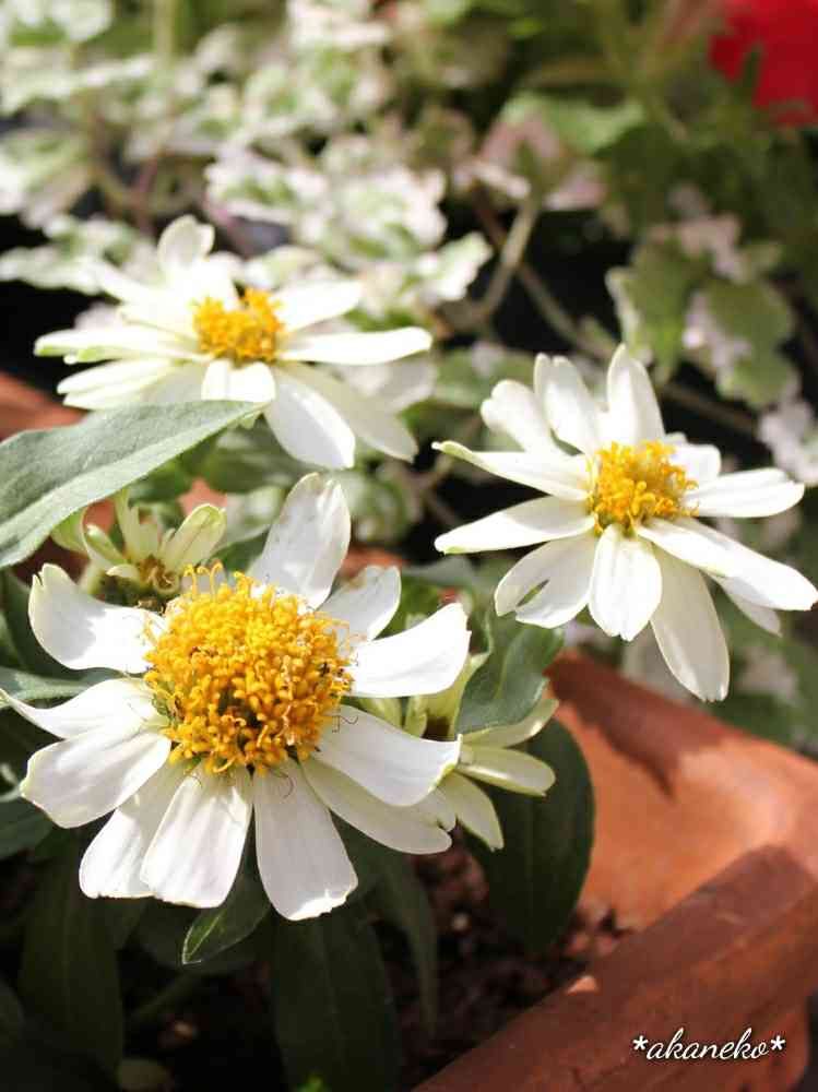 あかねこさんのエントランス,白い花,ジニア百日草の投稿画像