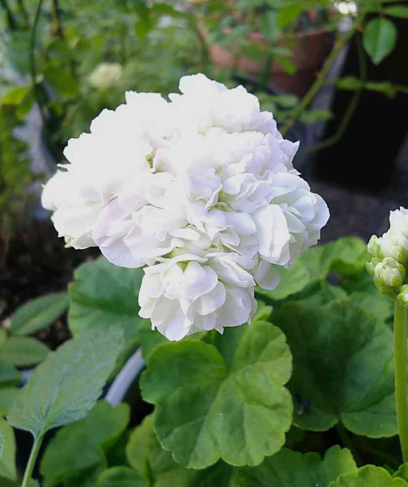 こんもりまぁるくほんのりピンクが入って恥ずかしげな純白ゼラニウムちゃんだわ~ん(*´³`*) ㄘゅ💕