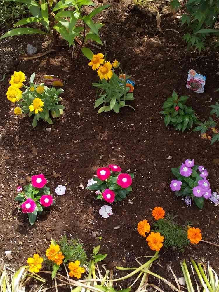 夏のお花を花壇に少し植えてみました。🤗🌿🌼枯れないでね