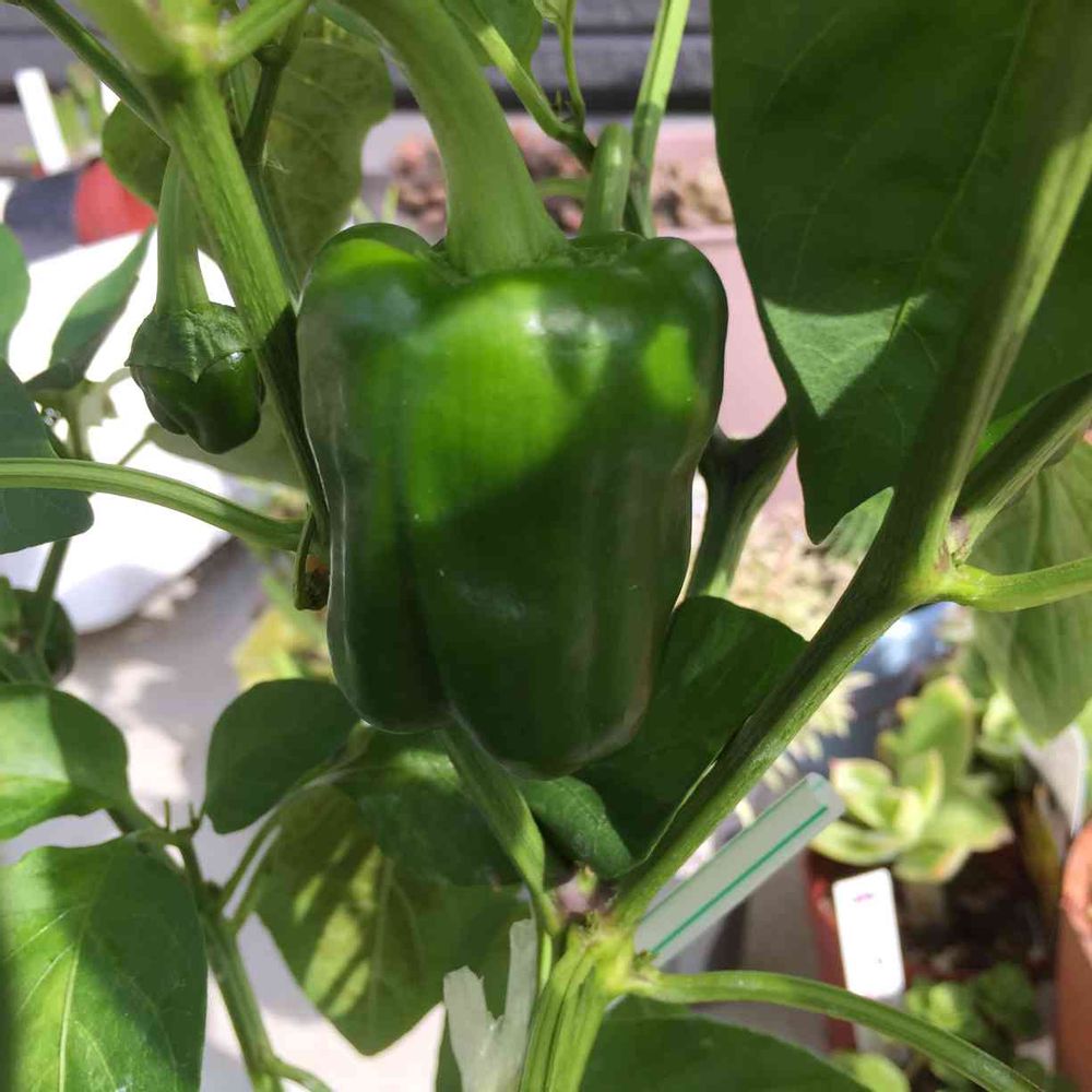 何故か菜園に目覚めたパパちいちゃなプランターにピーマン種から植えてやっとなりました。他にも私の好きなアップルミントやアスパラ、大葉、水菜、カブなど育ててます。まるっきりの初心者なんだけど頑張ってる。楽しそうで良かった♪