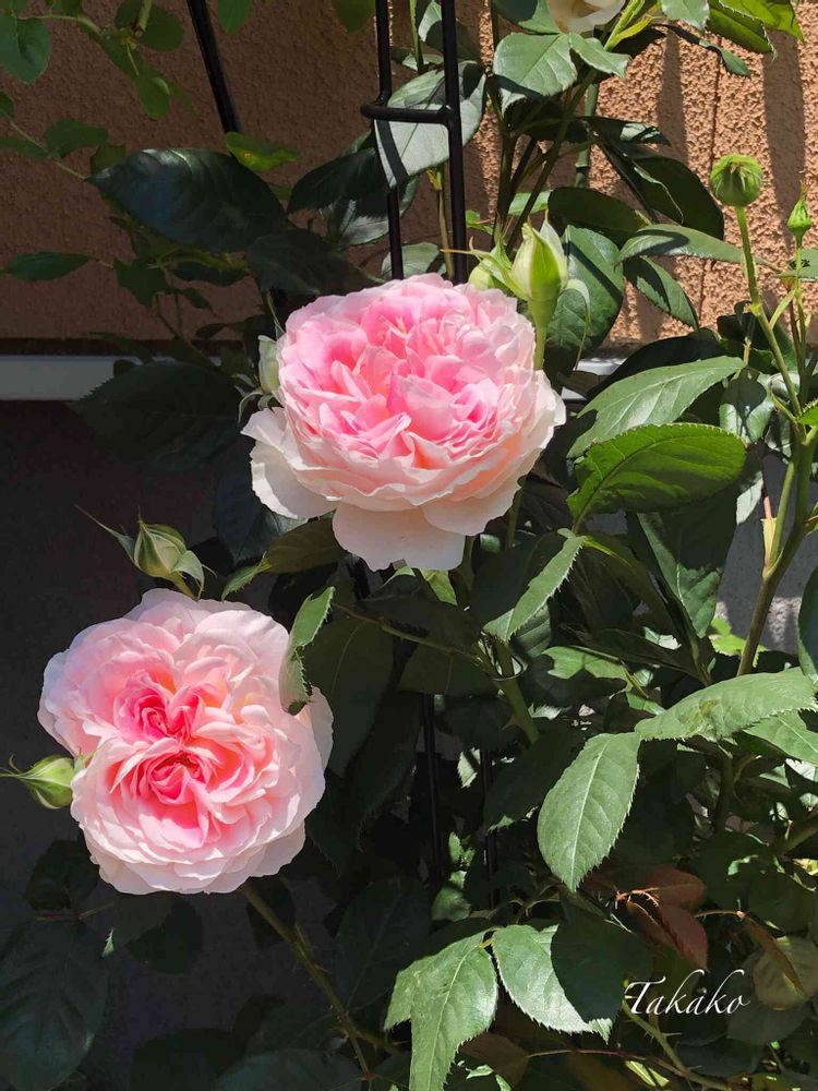お花が大きくて垂れ下がりそうでどうしたらいいのかなぁって思って、同じ薔薇をお持ちのたかこさんにお聞きしました。