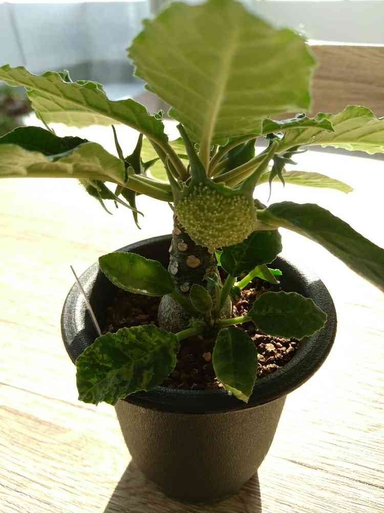 うちに2鉢あるドリステニア フォエチダの、葉っぱに斑が入っている方です。