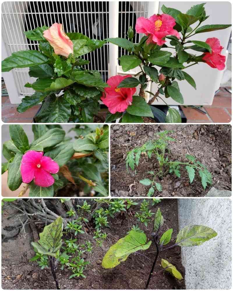冬越ししたハイビスカスとニチニチソウが咲いていました(pq゚∀゚*○)