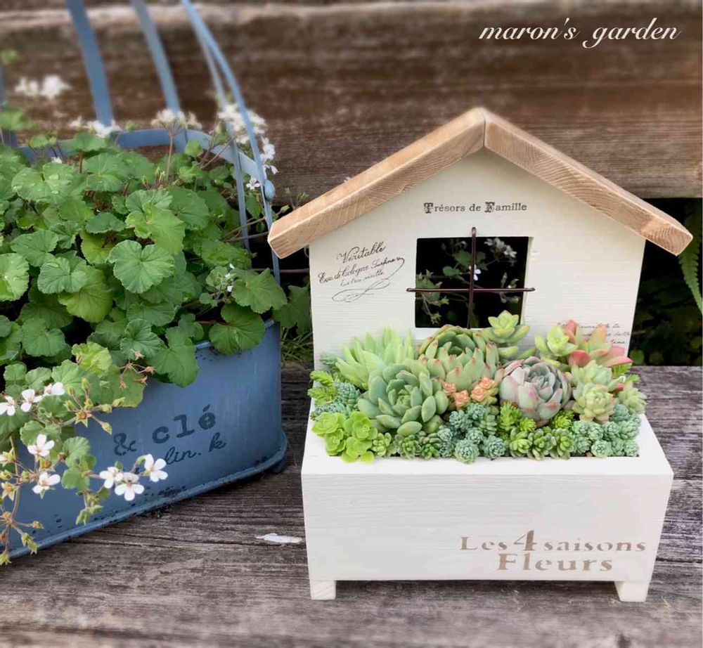 このおうちは、いつのまにかダンナさんが作ってたの😊 水はけがいいように穴も開けたし、脚もつけといたよだって❗️ すっかりハマってるのに笑えてきたよ🤣