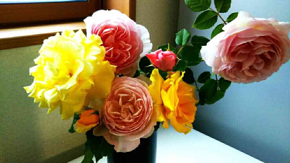 庭のバラたちを摘んで、飾ります❗家の中もバラの香りに癒され🎵朝から清清しい。