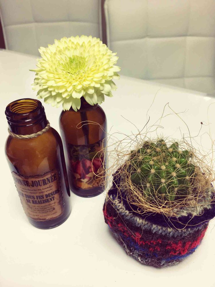 ふぁんきーさんに頂いたリメ瓶&ほさみさん手作りのセーターを着たサボちゃん‼️