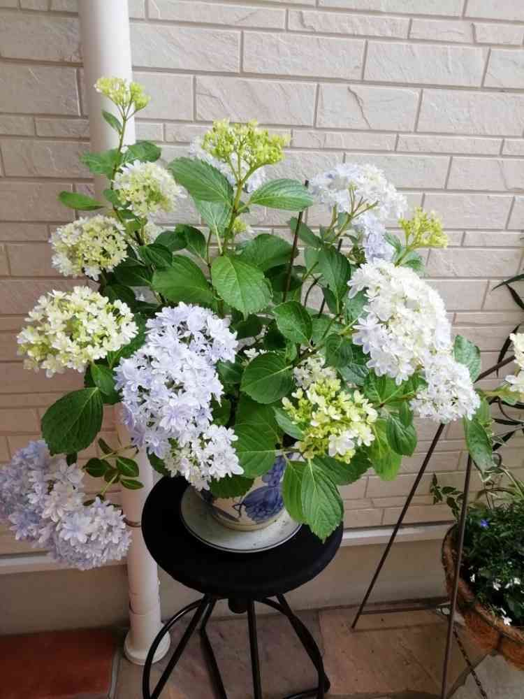 スタンドと鉢がとってもお洒落で、爽やかな紫陽花を一層引き立ててくれてますね(*ˊ˘ˋ*)。♡:*°