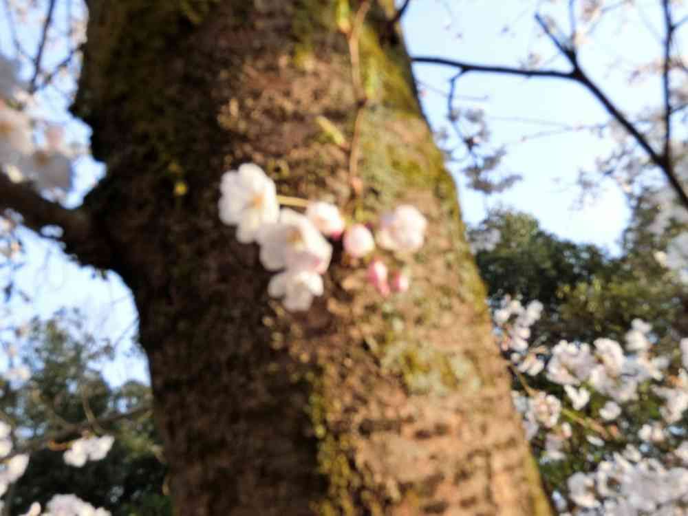 幹の途中から桜咲いた🌸😲