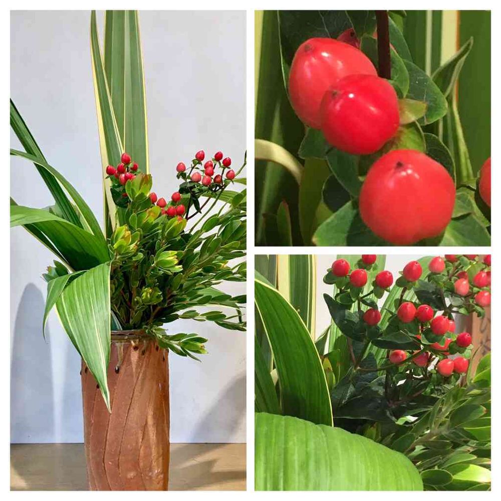草月のいけばなは「線・色・塊」に注目し、疎密によって強弱・濃淡・変化をつける。そしてバランス構成は基本的には日本美術をふまえているとのこと。
