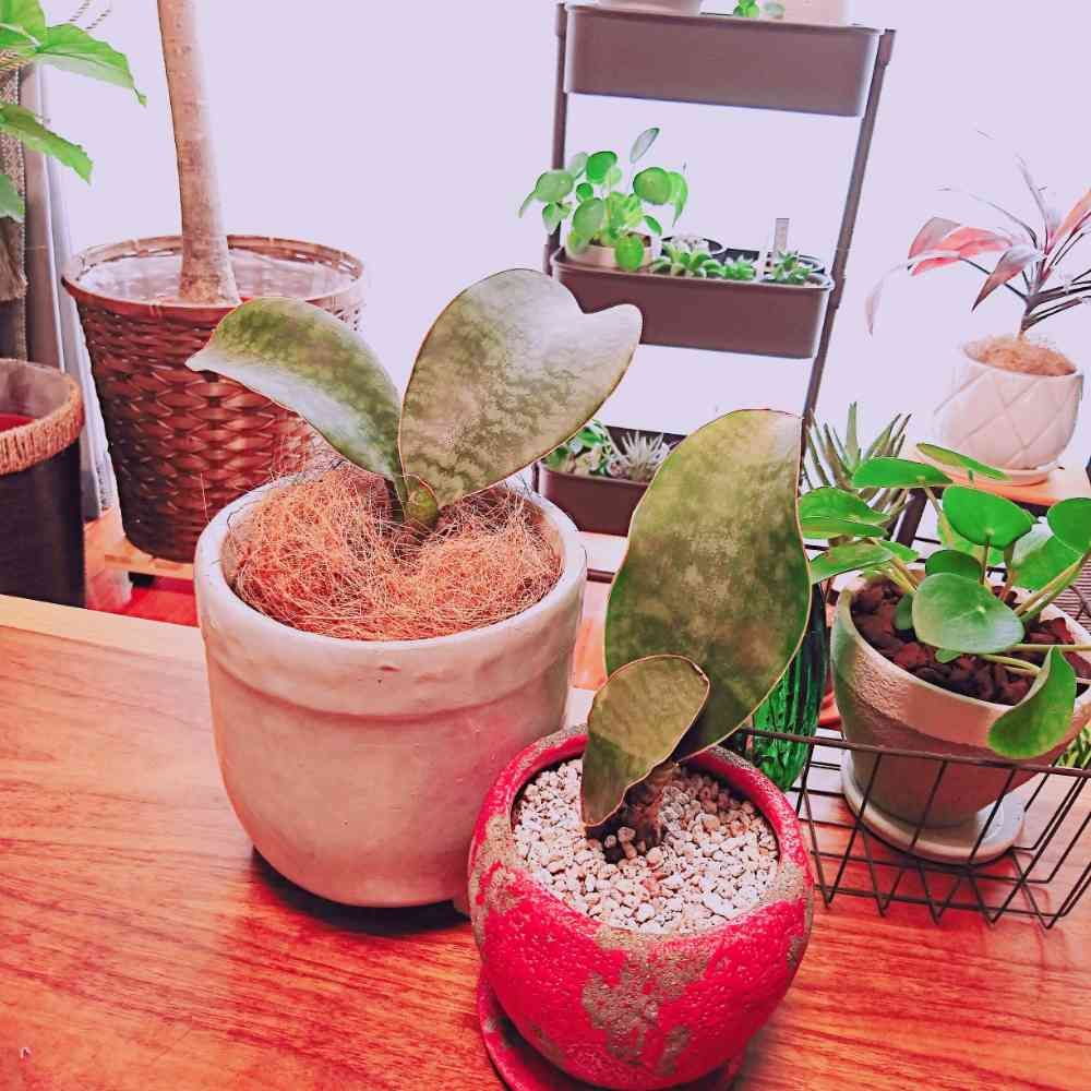 赤い鉢の方の大きな葉の株元に新芽が3つも控えているんですが…🤔