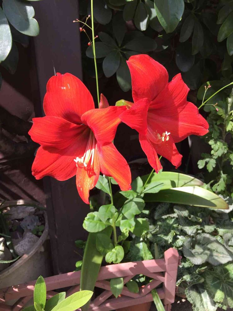 アマリリスだったんですね!名前は知っていても、花を見たのは初めてです。鮮やかな花ですね😄
