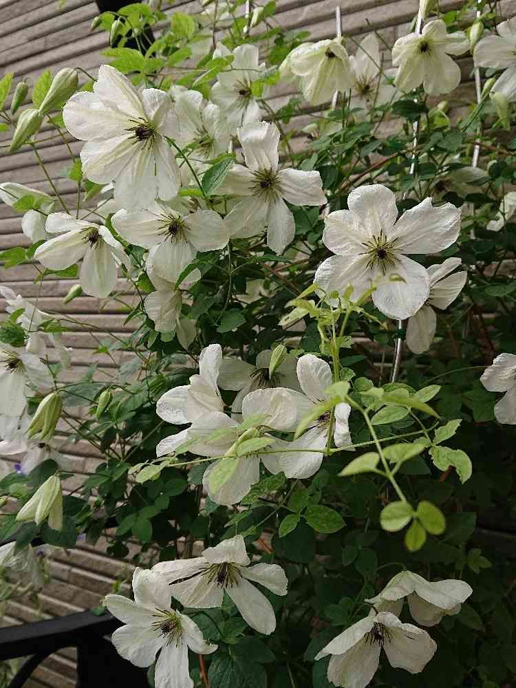 クレマチスのマリアコーネリアが次々咲き続けています。ピチセラ系で多花が特徴です。