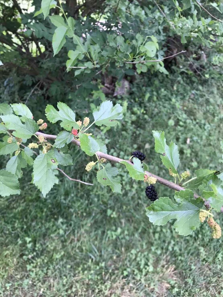 桑の実ですか!そうかも知れません。色んな形の葉があると調べたら出ていましたが、この木の葉を見たらやはり桑の実、マルベリーっぽいです。アメリカにもマルベリージャムなど近くの農家さんが自家製のを売ってたりしてます。