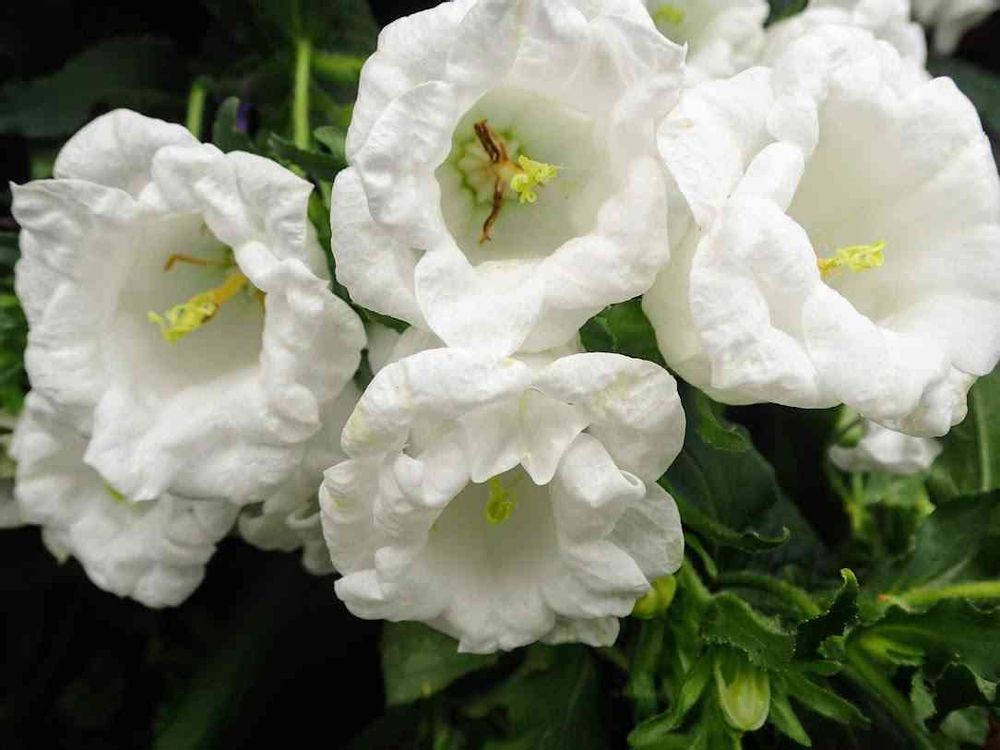 カンパニュラ・メジウムダブル(風鈴草の二重咲き)のホワイトも咲きました。前出のブルーと、これのほかに、ピンクもセットで買ったのですが、苗のうちに枯れてしまい、二色だけになりました。ピンクもかわいいのに残念なり😢