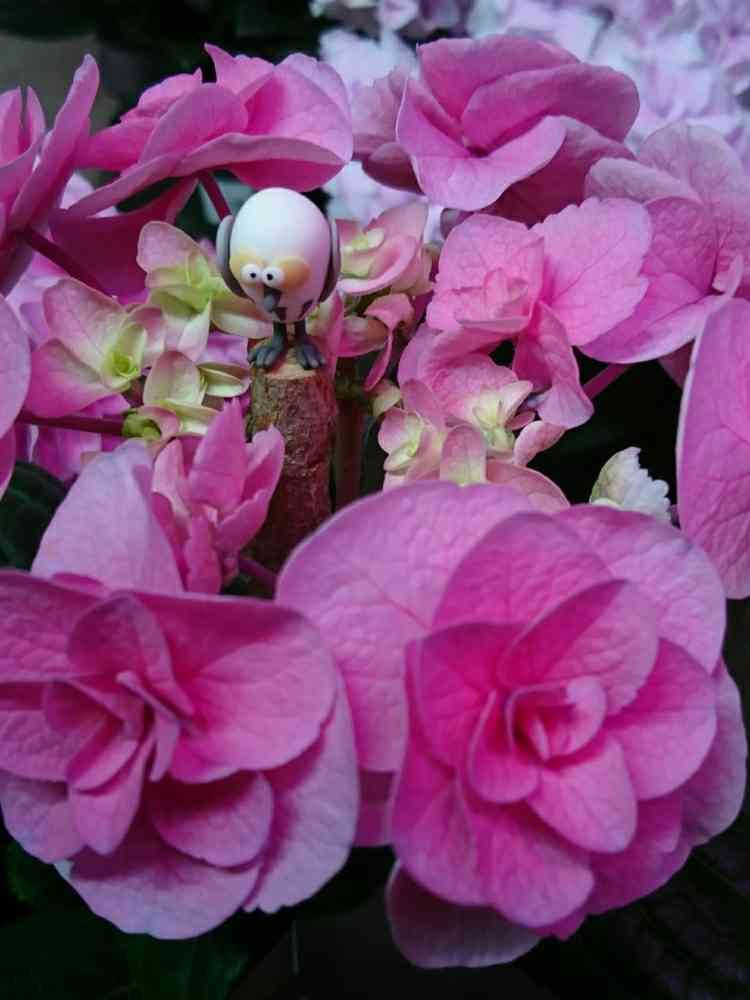 紫陽花の花の中から顔を出している子可愛いですね❤️
