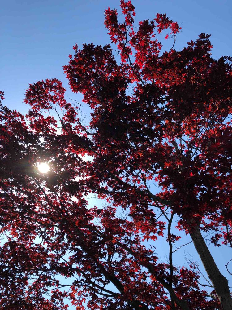 朝日を浴びる真っ赤なモミジを逆光で撮ってみました🍁