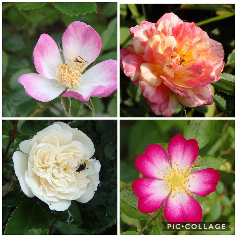 左上の一重のバラは残念ながら品種名不明なのです😌