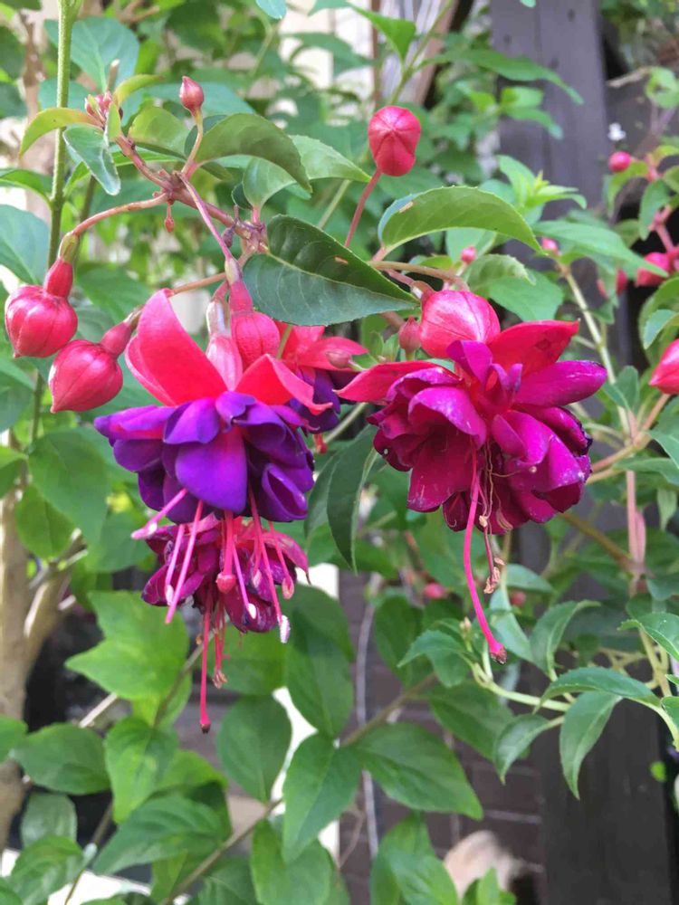 七夕飾りの様なフクシアの花 くす玉が割れた🎊様にも見えますが