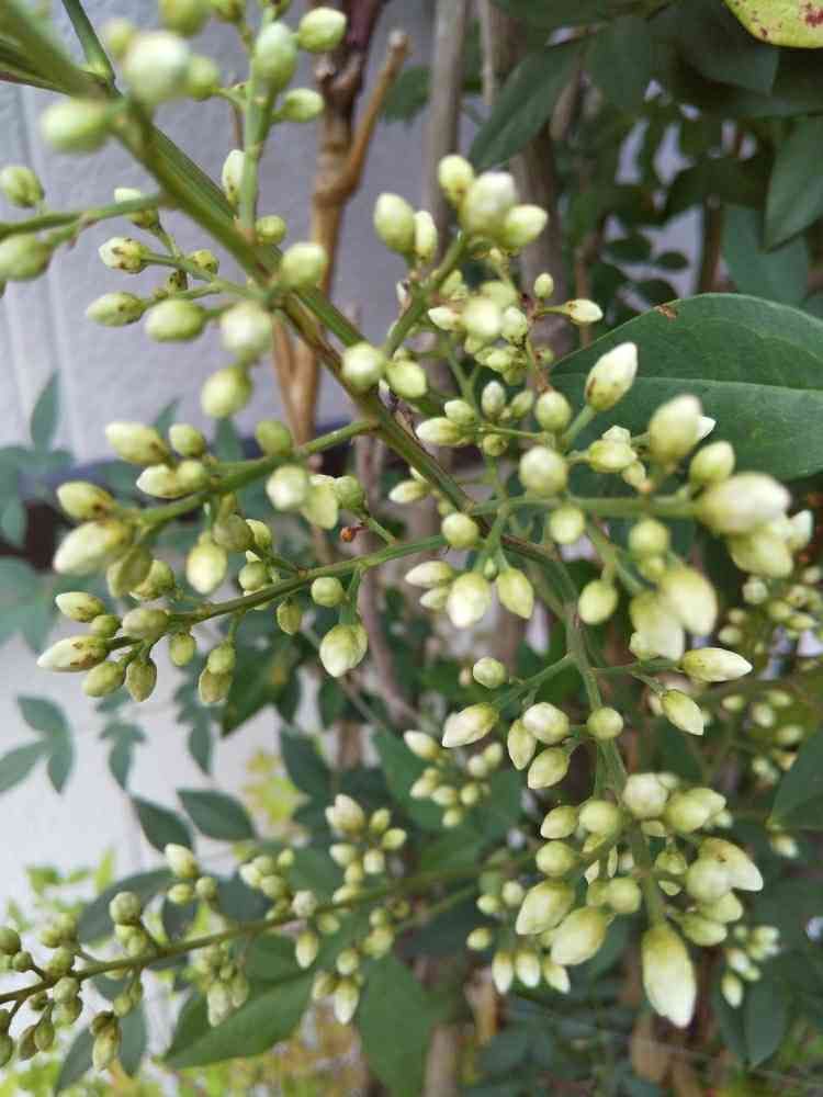 庭の南天にいつの間にか花が❣️