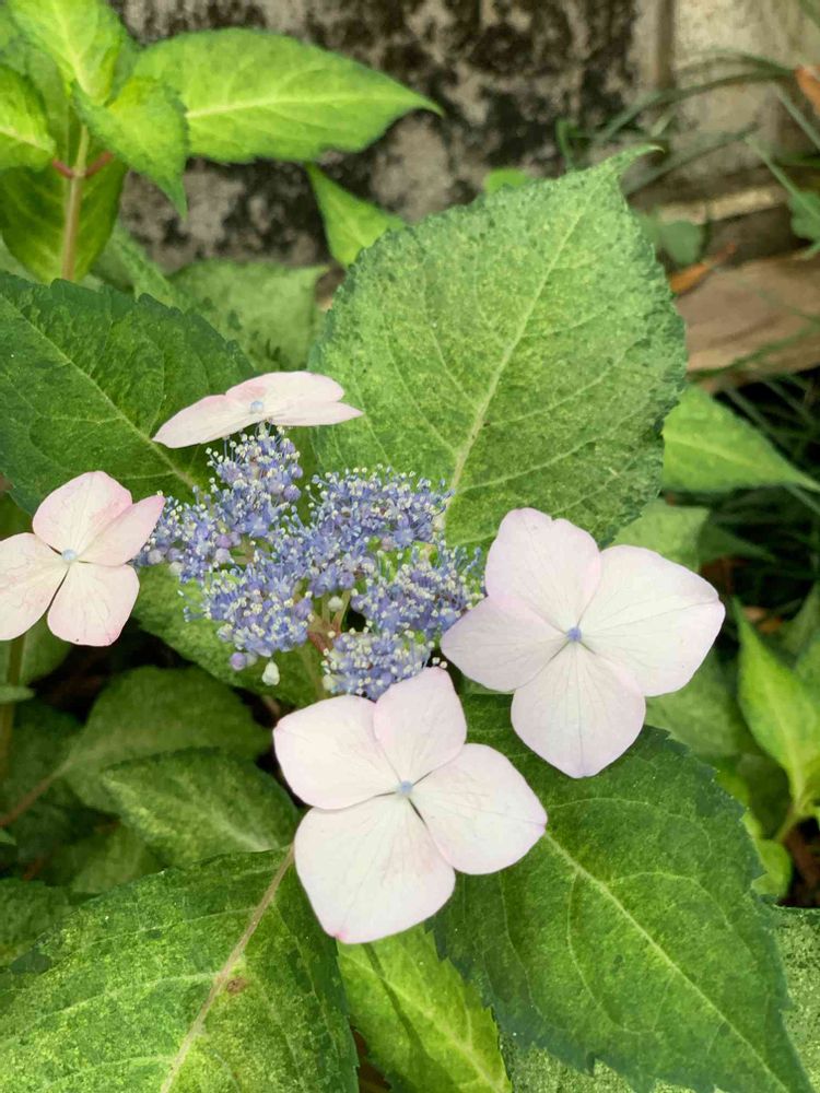 こちらは山アジサイ大甘茶😊斑入りの葉っぱがきれいなんです。