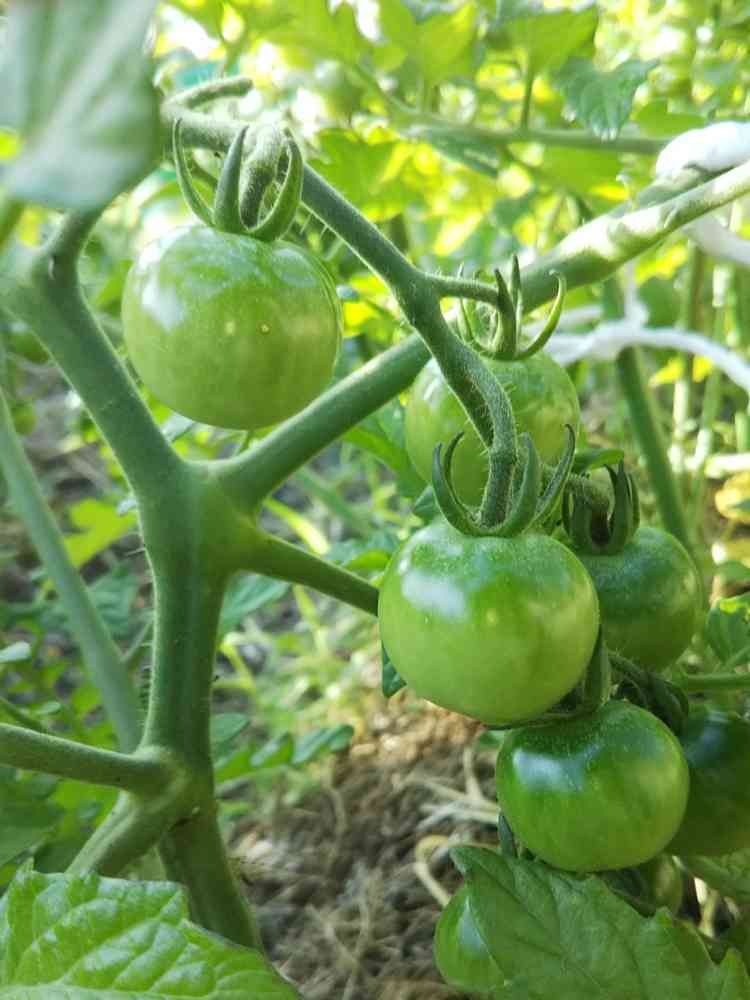 ミニトマト❗️赤くなるの楽しみ~。二本仕立てにするつもりが気づいたらジャングルに‼️