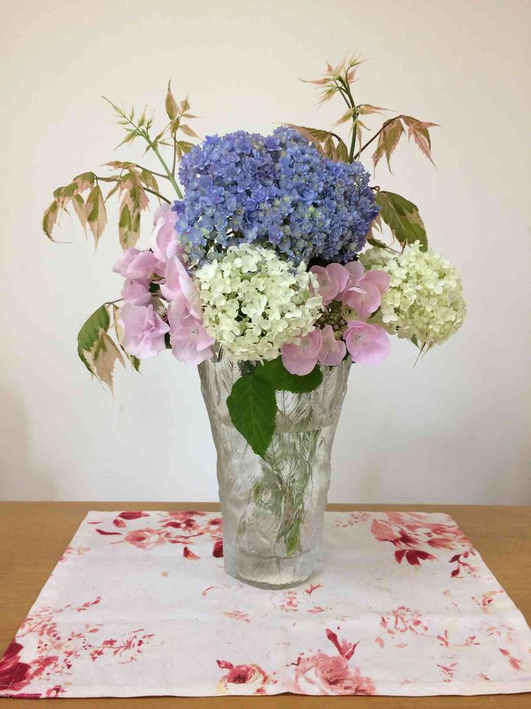 紫陽花。,庭の花でアレンジ,ネグンドカエデフラミンゴ。の投稿画像