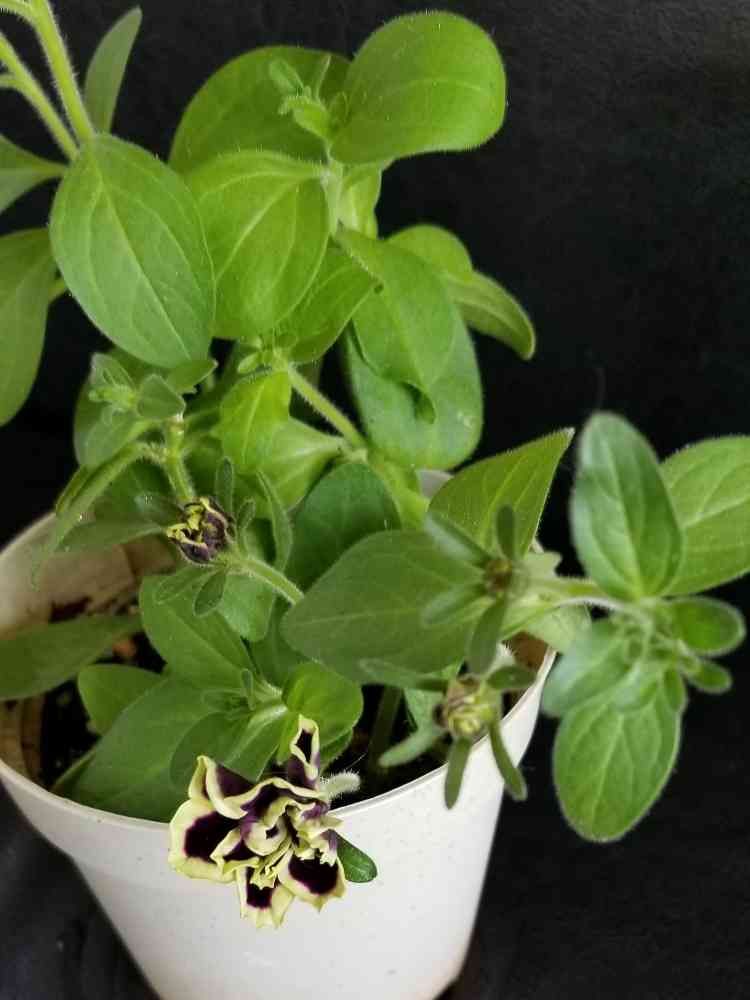 4月に挿し穂から挿し木したペチュニア花衣黒真珠花が咲きました。